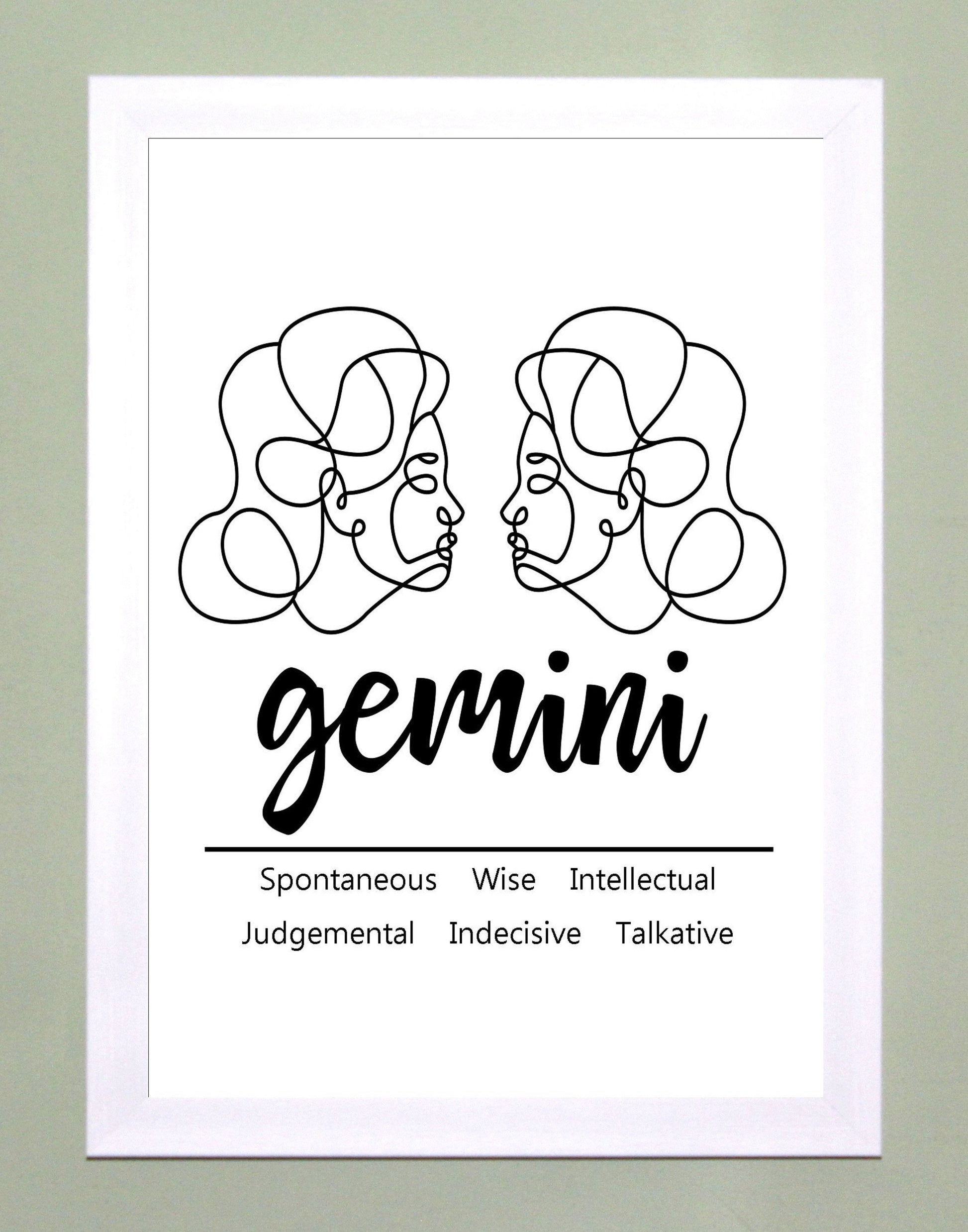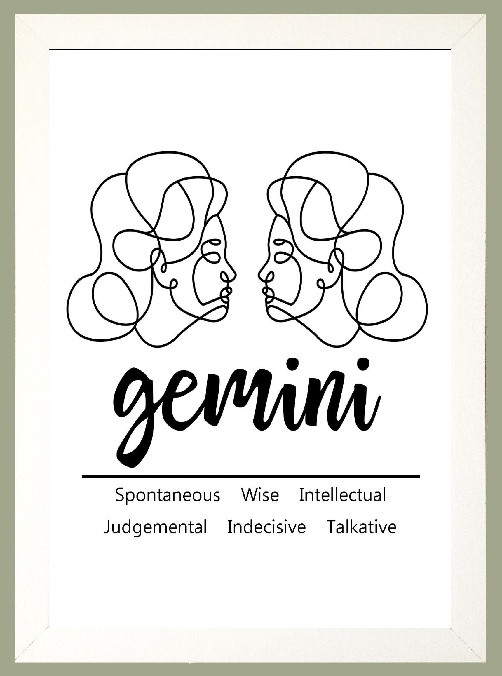 Gemini Zodiac Star Sign Traits A4 Poster Sold as the Print Only or in a Choice of Frames.